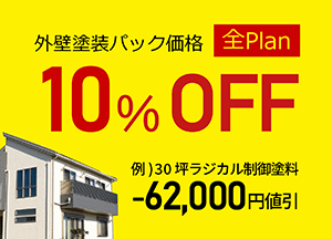外壁塗装パック価格より自動的に10%割引されます。(申込不要)