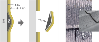 きちんと除去せずに塗装すると、塗膜の剥がれを引き起こします。