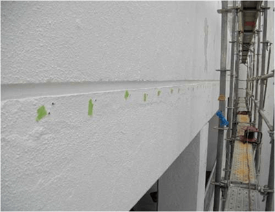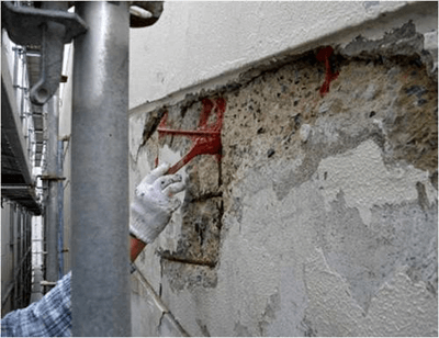 鉄筋の発錆等によって、モルタル、コンクリート、タイル等が膨れや欠落しそうな箇所は、早めの補修が必要となります。